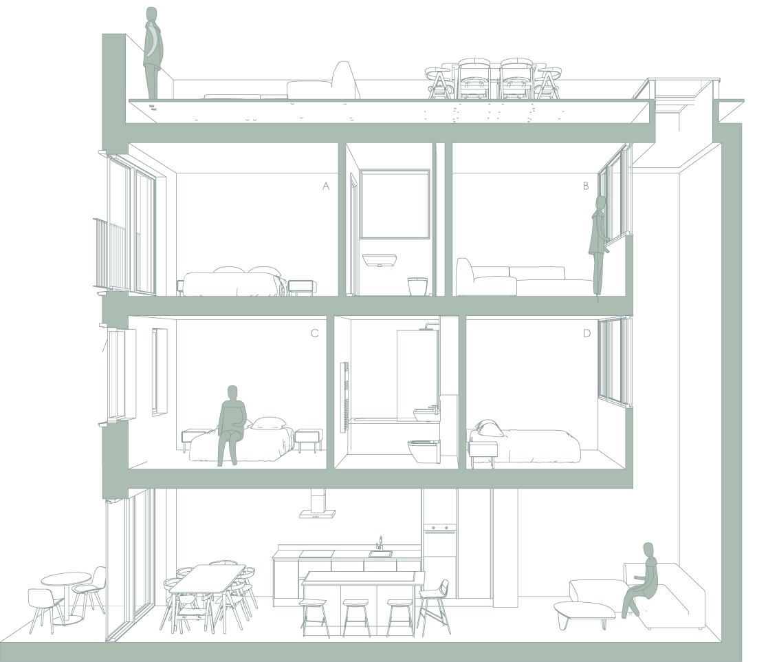 “This urban, intense site allows diversity in types of spaces that brings family living to the city centre”